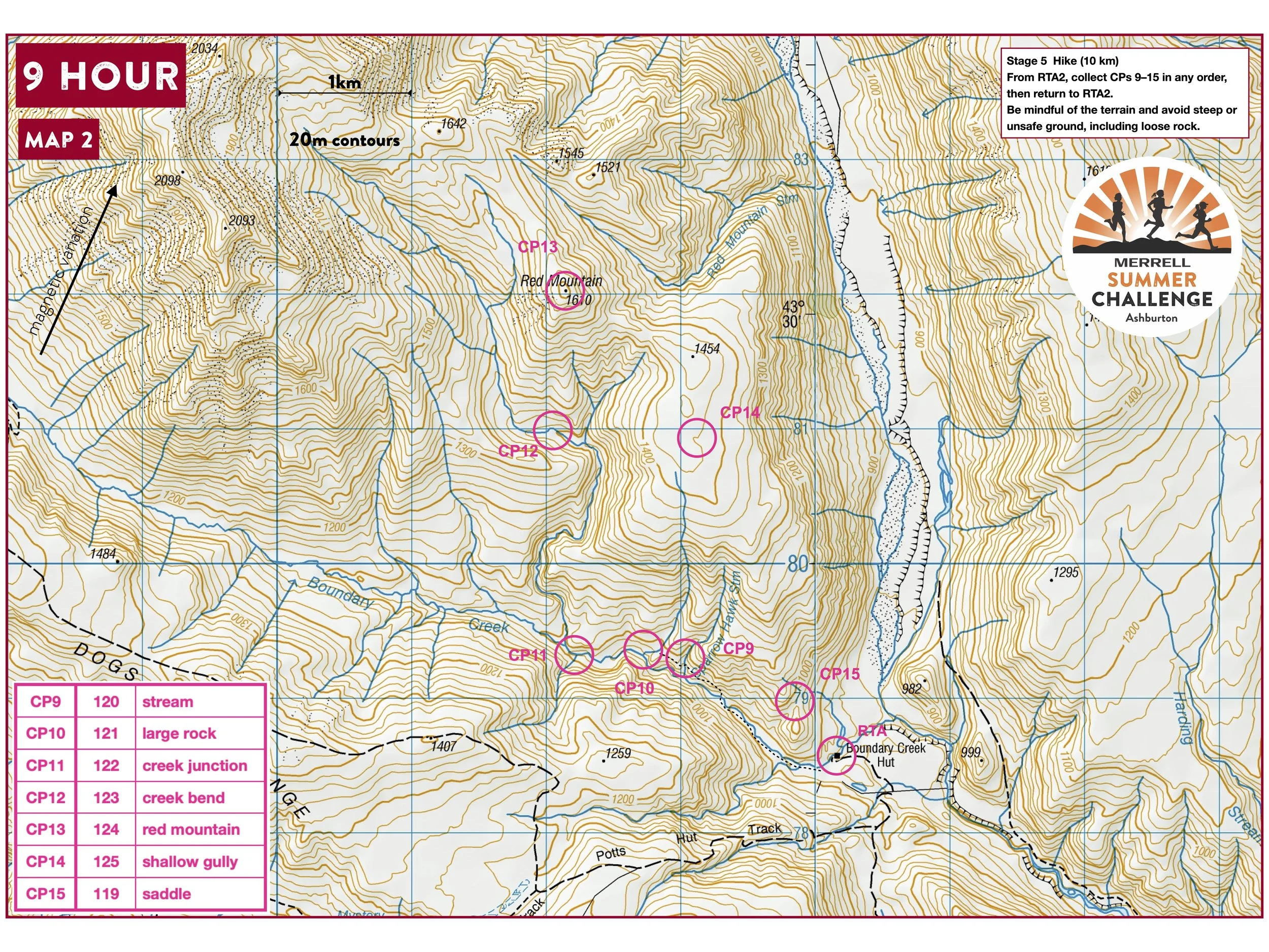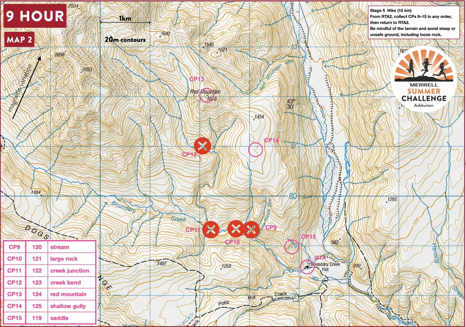 From RTA (Boundary Creek Hut), teams must not collect Checkpoints 9, 10, 11, or 12.