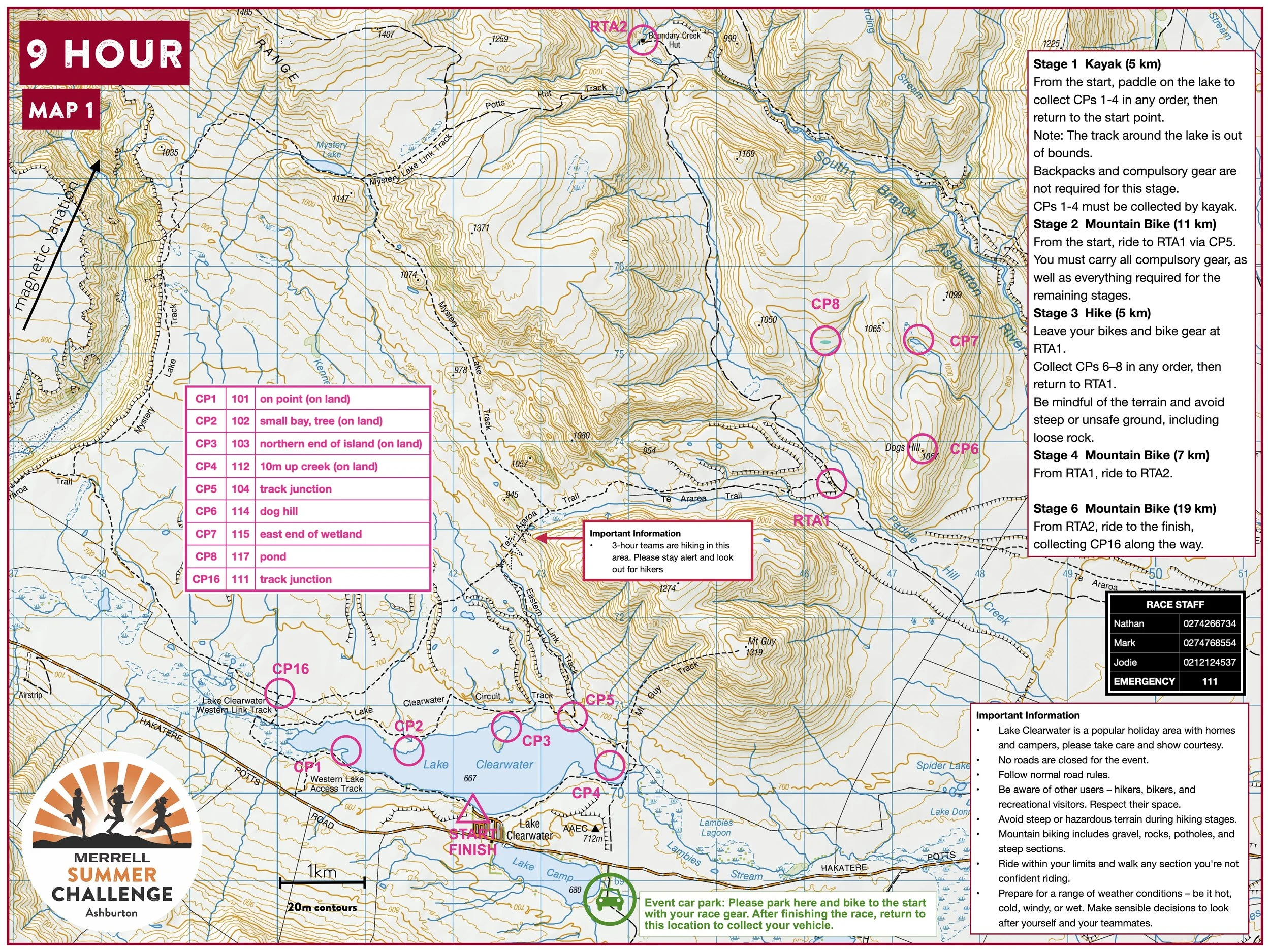 9-hour teams must depart RTA1 on hike stage by 5:00 pm to remain on the full course.